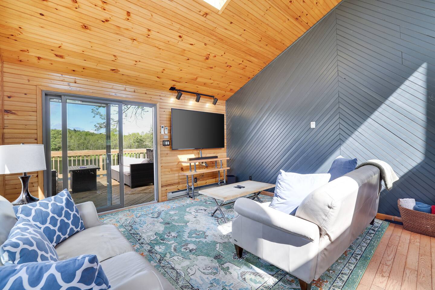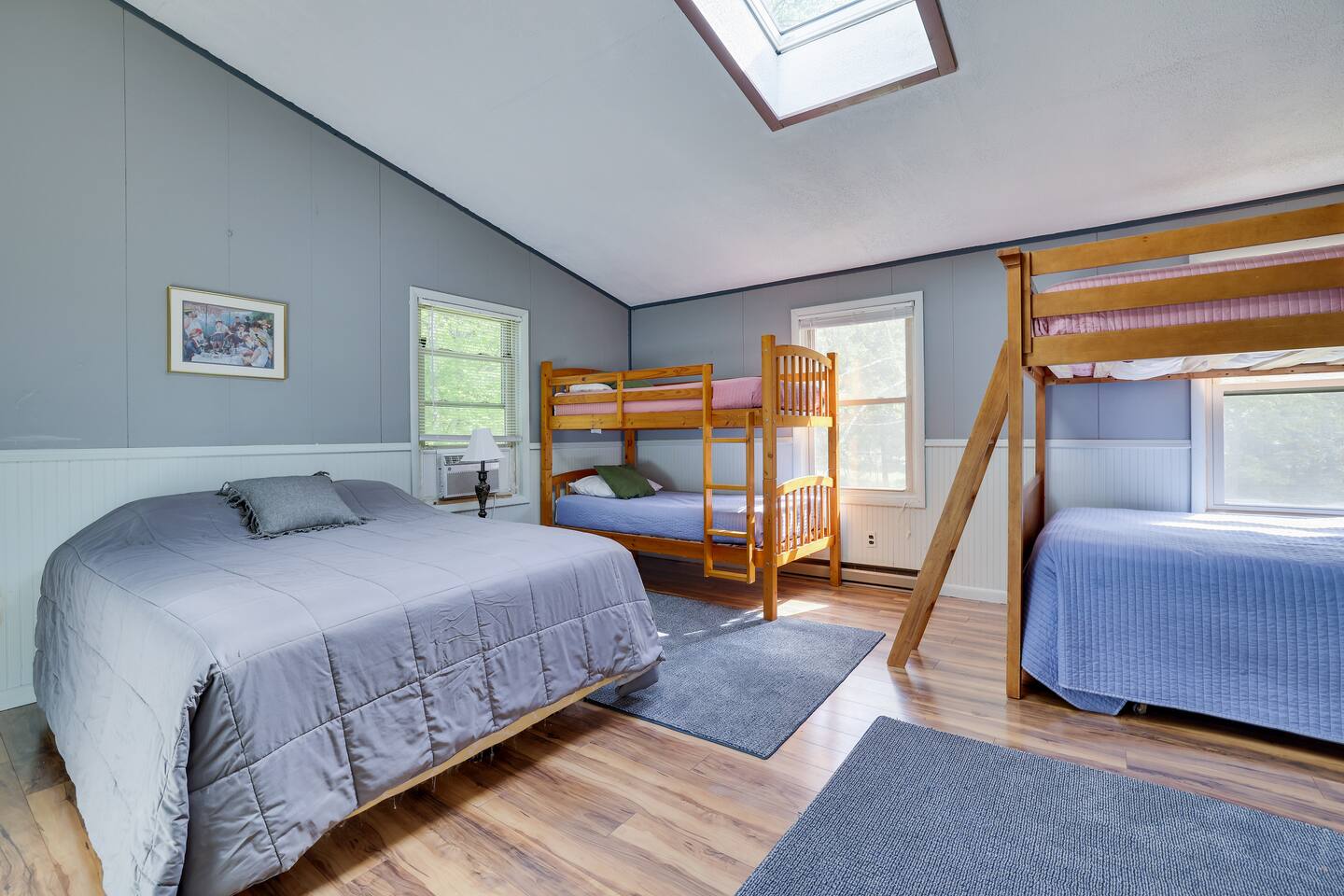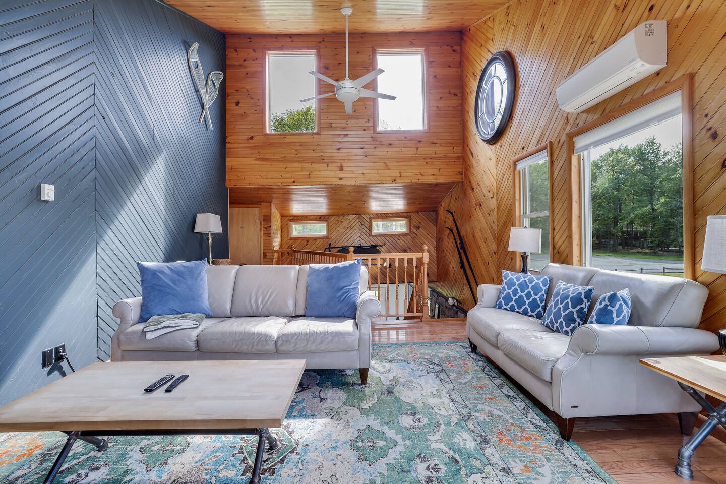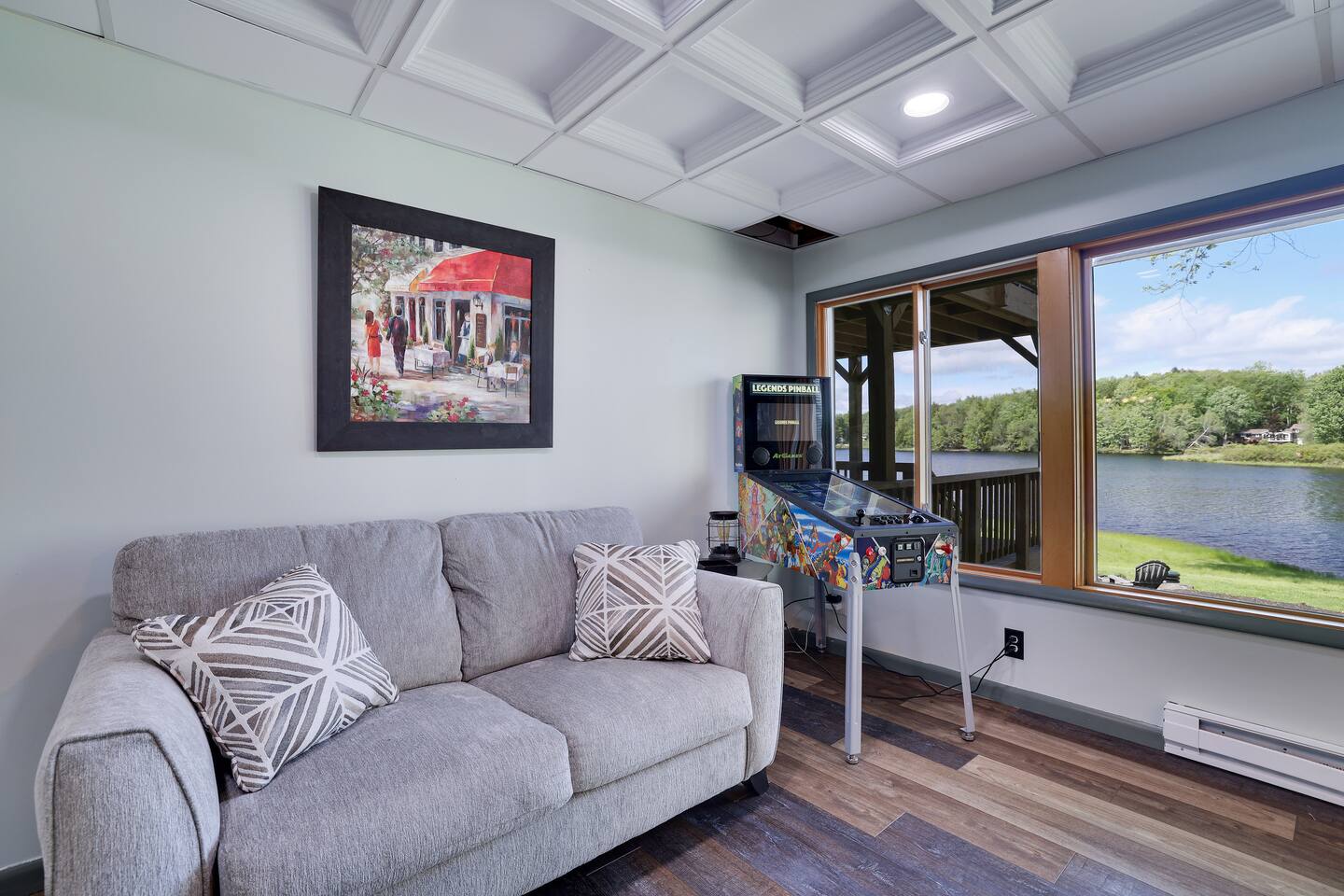 Gorgeous Lakefront Lodge Winter/Summer Home in Lake Arrowhead! 4 bedrooms including a bunk room that’s great for all the kids. Purchased in September 2022 and lovingly renovated and restored. We’ve updated the property with brand new 2-story deck, new patio furniture, new first floor flooring, sauna, new ductless heating/AC, updated landscaping, added arcade & digital pinball machine (25+ tables), added mountain theme decor, added lawn swing by the lake, upgraded the WiFi to enterprise class with multiple access points (no dead spots and blazing fast for 75+ devices), upgraded all TVs to smart TVs with Hulu, Netflix, and Amazon Prime. This mid-century beauty is ideally located on the lake right next to a community beach and playground. In addition to its own private beach and lake access, it’s only a quick swim or kayak ride across the lake to the Island Pool complex, one of three heated pools in the community. 4 bedrooms and 3.5 bathrooms make this an ideal place for extended family get-togethers. On the first floor is the kitchen, dining area, game room, 1.5 baths, 2 bedrooms and a laundry room. The kitchen is fully equipped with all the basic cookware, stove, oven, and an over-the-range microwave. Our dining areas include 2 6’ tables with seating for 6 and even more tables and seating outside on the screened in porch and deck. The library and game room with its breathtaking view of the lake is the perfect hangout spot with pool table, beverage fridge, bar, a 55' LCD TV, a library of books, and board games. Arcade Legends Ultimate Pinball machine is set up for free play and includes over 25+ pinball tables and 100s+ of your all-time favorite and classic arcade games, including Mortal Kombat, Pac man, Mrs. Pac Man, Centipede, Asteroids, Street Fighter, X-Men, and many more. Located on the second floor is the cozy living room that has a cathedral ceiling, a 65 ' LCD TV and a sliding door out onto the 2nd story deck that features gorgeous views of the lake, a propane fire, and tons of seating. Down the hall is another bathroom, a Sauna, a bunk room that can easily sleep 6+ kids and is great for families, and a massive primary bedroom and suite that has a sliding door out onto the deck and a huge 80’ LCD TV. Our home sits on Lake Arrowhead, a private lake that permits fishing, swimming, and kayaking. We are right next to community beach #3 which has a swimming area, picnic tables, pavilion, boat launch, playground, and bathroom facilities. Tennis, Pickleball and Basketball Courts are available to use in the neighborhood along with 3 Outdoor pools, Playgrounds, 4 Beaches with snack shacks and more. Hike the beautiful trails of Hickory Run State Park and Austin Blakeslee Natural Area both just a few miles away. Come to Stagshead any time of the year and you’ll find a wide range of fun activities no matter your interests. Other local attractions include Pocono Raceway, historic Jim Thorpe, Aquatopia, Great Wolf Lodge, Kalahari Indoor Waterpark, Montage Ski Resort, and Split Rock resorts. Other activities nearby include snowmobiling, horseback riding, paintball, hiking, white water rafting, fishing, hunting, miniature golf, water parks, casino gambling, bowling, movie theater, multiple golf courses, and shopping. Township Registration #020402. Minimum Age to Rent in Tobyhanna Township is 25.