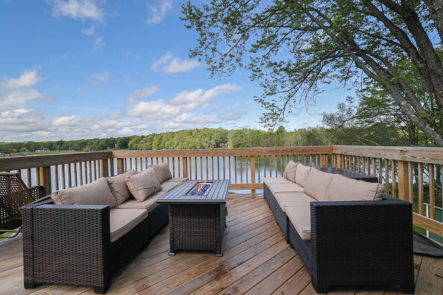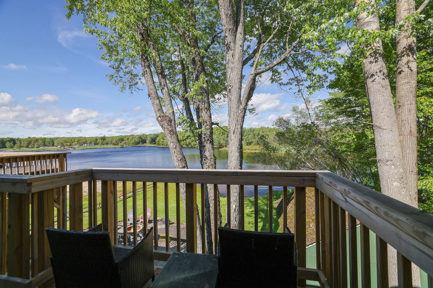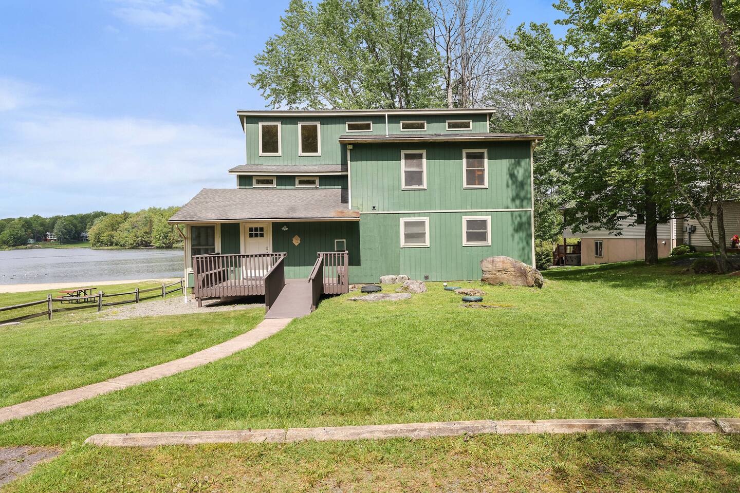 This Lakefront property has been lovingly renovated and restored. The deck is completely new in 2023, providing panoramic views of the lake, a screened-in porch, two large living areas and a secluded balcony outside of the main bedroom. 4 bedrooms and 3.5 bathrooms make this an ideal place for extended family get-togethers. Come to Stagshead any time of the year and you’ll find a wide range of fun activities no matter your interests. Close to Ski Areas, Water Parks, Hiking and more!