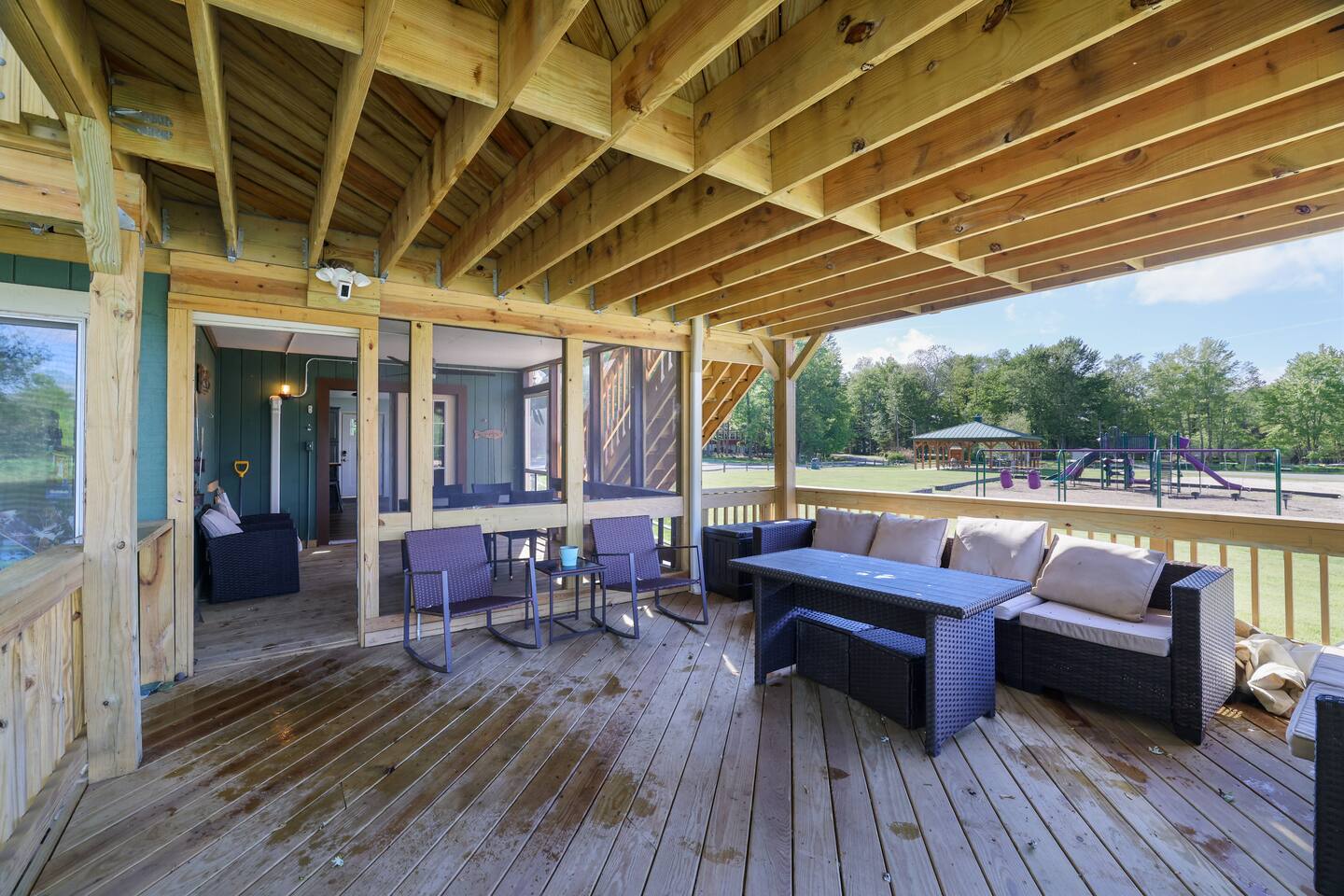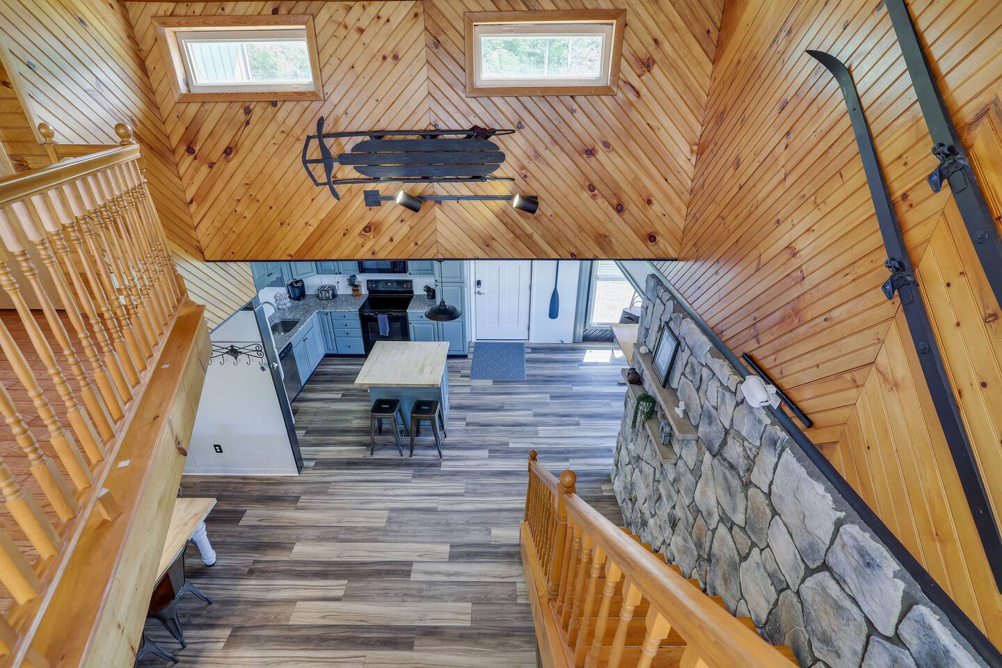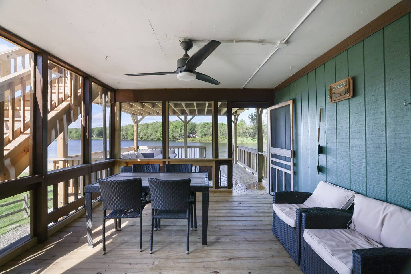This Lakefront property has been lovingly renovated and restored. The deck is completely new in 2023, providing panoramic views of the lake, a screened-in porch, two large living areas and a secluded balcony outside of the main bedroom. 4 bedrooms and 3.5 bathrooms make this an ideal place for extended family get-togethers. Come to Stagshead any time of the year and you’ll find a wide range of fun activities no matter your interests. Close to Ski Areas, Water Parks, Hiking and more!